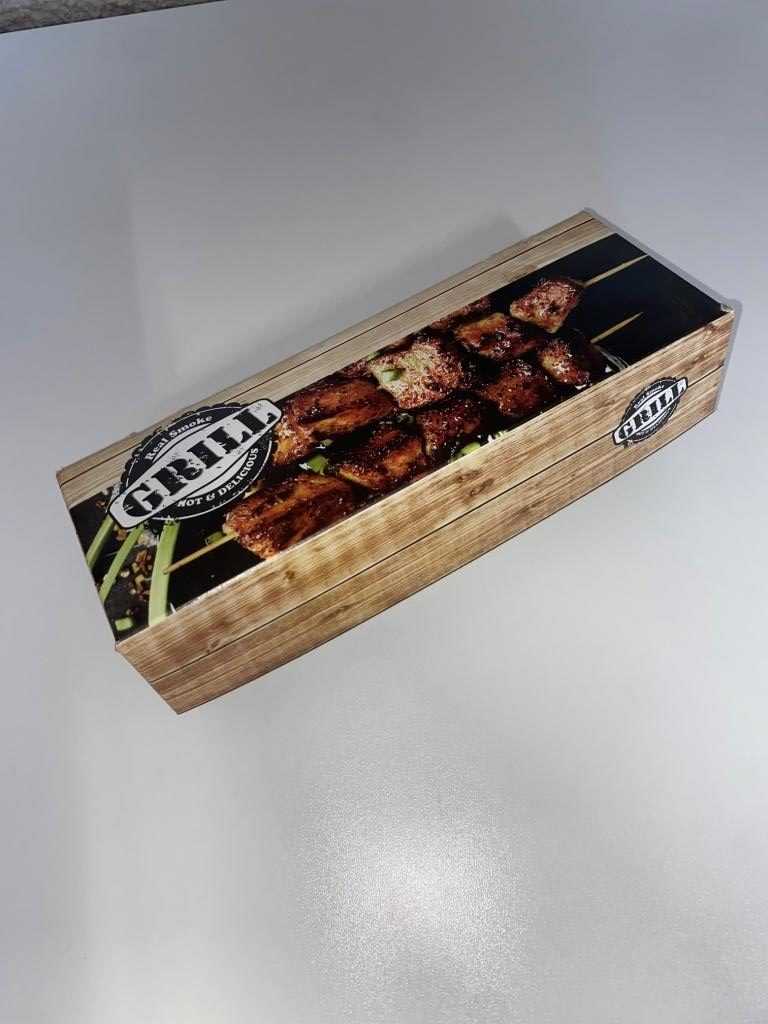 Xάρτινα, τυπωμένα κουτιά με μότο: “GRILL  ή BON APETIT” , ιδανικά για σουβλάκι. (25x13x4,5)